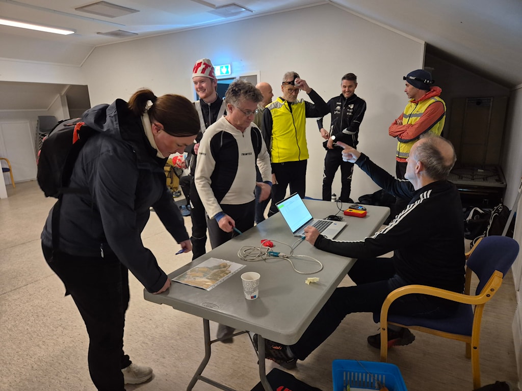 Løypelegger Stein Ivar hadde fulle hyre under påmeldinge til løpet. Masse løpere og mange spørsmål om løypa.