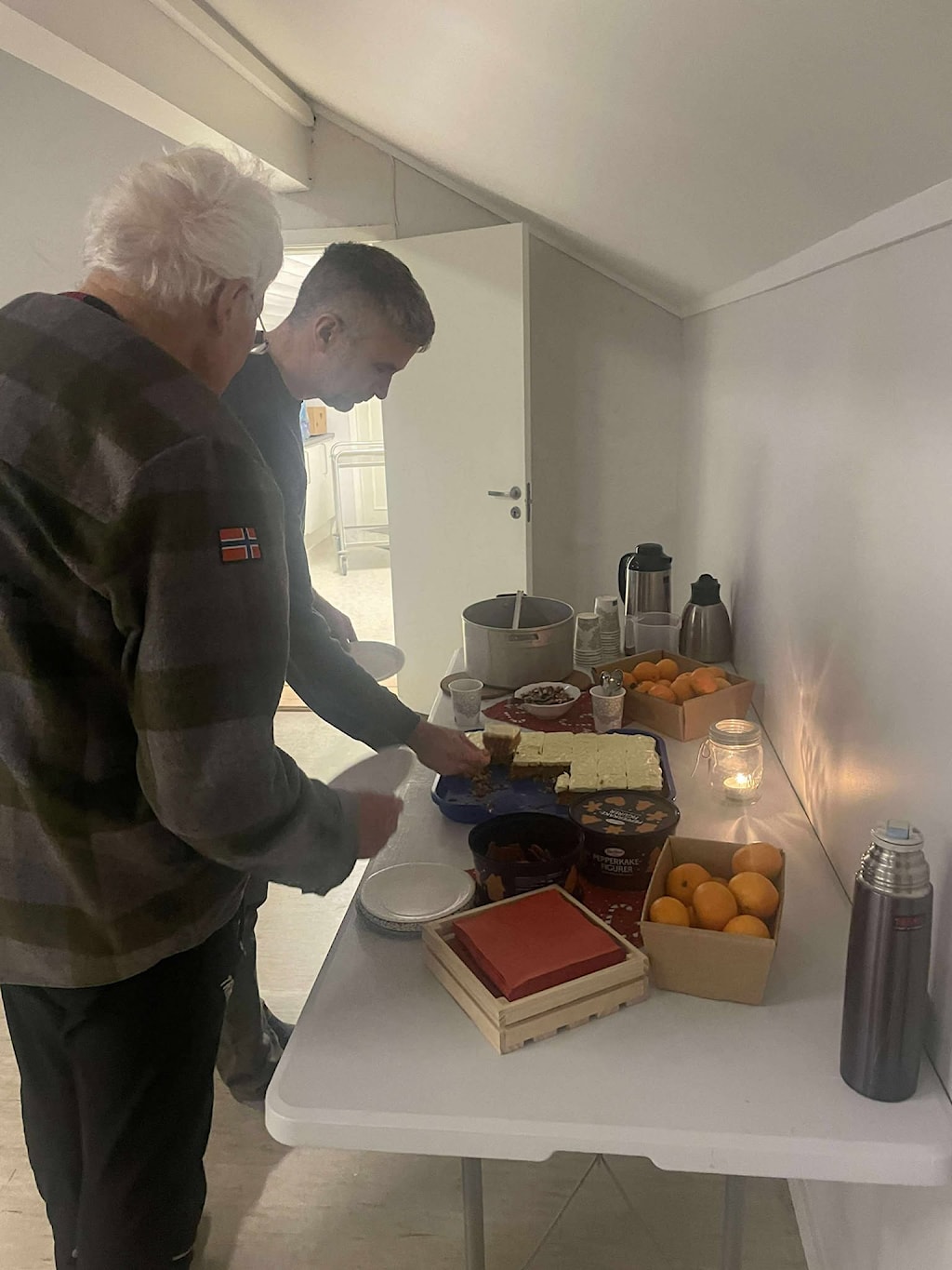 Kjøkkenavdelinga hadde vært i gang lenge før føste start, så etter løpet var det bare å stupe bort til stende bufè med gløgg, mandler, mandarin, Kristins skuffkake, kaffe og pepperkjeks. Og flere hadde mange runder for å forsyne seg av godbitene. Så fikk vi den fine blanding av alt bordet hadde å by på, krudret med gode o-historier rundt bordet. Martin og Frank Egil har ikke direkte med overnevnte kommentar å gjøre.