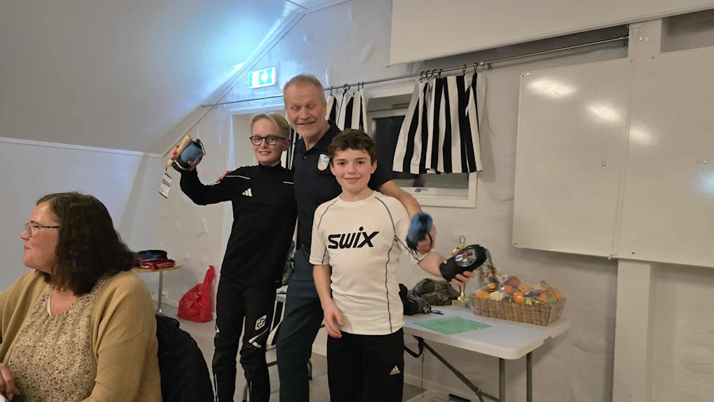 Vi starter med premier til O6-eren for i år og vi knipset naturligvis de som møtte opp. Her ser vi Martin og Elend i klasse H 13-16. Åsmund hadde dratt for å trene til neste år og atle var linselus og representerrte Oskar i klasse 3B Trim. Mona sitter helt stille og venter på Turo og Ukens løype.