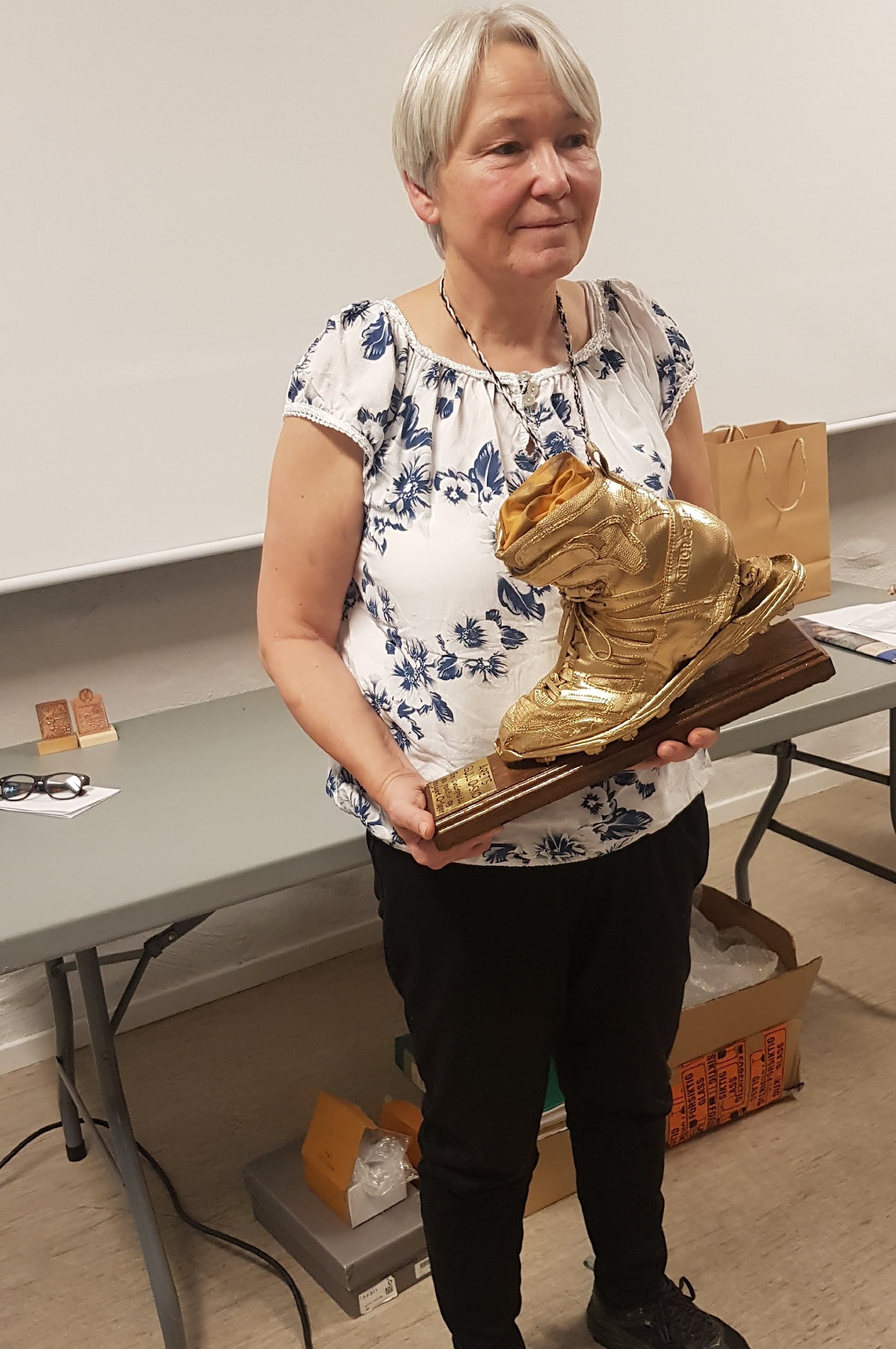 Årets gull-o-sko går til en meget ivrig Melhus-løper. Vinneren er en av de løperne i Melhus som deltar på flest treninger og løp i løpet av sesongen. I tillegg bidrar hen til at det er trivelig for alle andre å være med på både treninger, løp og lagsturer. Hen møter alle med sitt gode og smittende humør, som gjør at alle føler det er hyggelig at de kommer akkurat i den dagen. Hen er svært viktig for det gode miljøet vi har i klubben vår. For hen er Orientering en livstil, og hen er et unikum hvis noen ønsker å finne info om arrangement i kretsen. Treningslysten er stor både sommer og vinter. Ingen overraskelse hvem det er nå?.... Hun har vokst opp med orientering og har et stort hjerte for o-sporten. Hun er gull for klubben vår, hun bidrar som løypelegger, er ansvarlig for inne-trening og setter ut løyper på tur-orientering. Ved KM høsten 2022 laget hun premier til alle deltagerne og hadde ansvaret for premieutdelingen. Når vi har sosiale arrangement stiller Hege opp og steker vafler, koker kaffe og deler ut premier, og er i tillegg ansvarlig for våre klubbturer. Mat og drikke kjøpes inn, og kubb lages 😊 For ikke å glemme at Hege har vært et engasjert styremedlem siden 2014. Hvorfor har hun ikke fått gull-o-sko før? Hege har konkurranseinstinkt, og ønsker å gjøre det bra i konkurranser, og hun gjør det ofte veldig bra. Noe hun ikke gjør stort nummer av, men smiler pent til Trønderbladet. Vi hører mer om de gangene løypa ikke er bygd for stor fart 😉, for det går fort når hun løper, og hun forklarer gjerne detaljert hvor det gikk for fort, hvorfor posten ikke var akkurat der hun trodde. Hvis vi skal ønske noe for det nye året så er det at Hege setter mest søkelys på alle de gode resultatene, for det er dem det er flest av. Men det er underholdning i bommer også. Hege deltar som sagt på nesten alle våre treninger og løp, og bidrar til god kvalitet på treningen og godt humør i treningsgruppa. Skulle hun være forhindret fra å delta, så følger hun likevel med på resultatservice og sosiale nettverk. Hun etterspør kart og løyper, og er svært engasjert og interessert i andres prestasjoner. Hege setter pris på gode resultater, men ønsker også full oppdatering på veivalg og bommer. Hege er en ener på å gi komplimenter til andres innsats. Hege; vi setter stor pris på deg, og du har virkelig fortjent gull-o-skoen! |