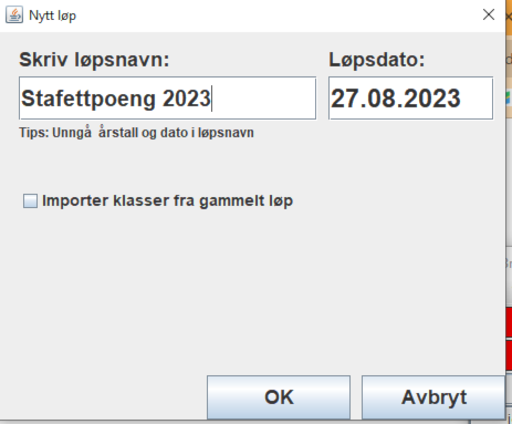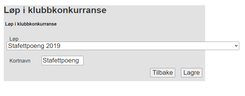 Nå må du legge inn disse poengene i et nytt løp som du kaller Stafettpoeng 20XX. (det året som gjelder)