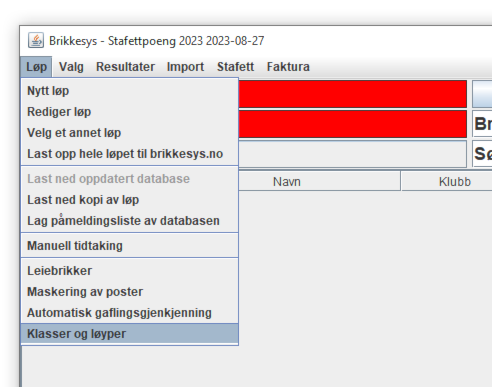 | Gå inn på Klasser og Løyper under fanen Løp. | ![]() |
