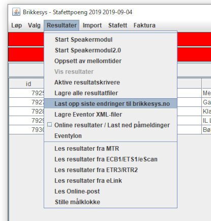 | Nå må du laste opp løpet til brikkesys.no. Det gjør du ved å klikke på Last opp siste endringer til brikkesys.no i fanen Resultater Nå er du ferdig i Brikkesys og du må gjøre resten på brikkesys.no | ![]() |